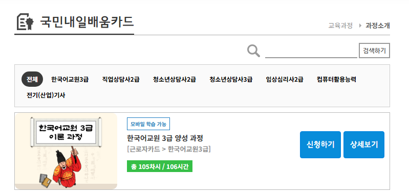 한국어교원자격증은 내일배움카드로 국비 지원이 가능합니다.