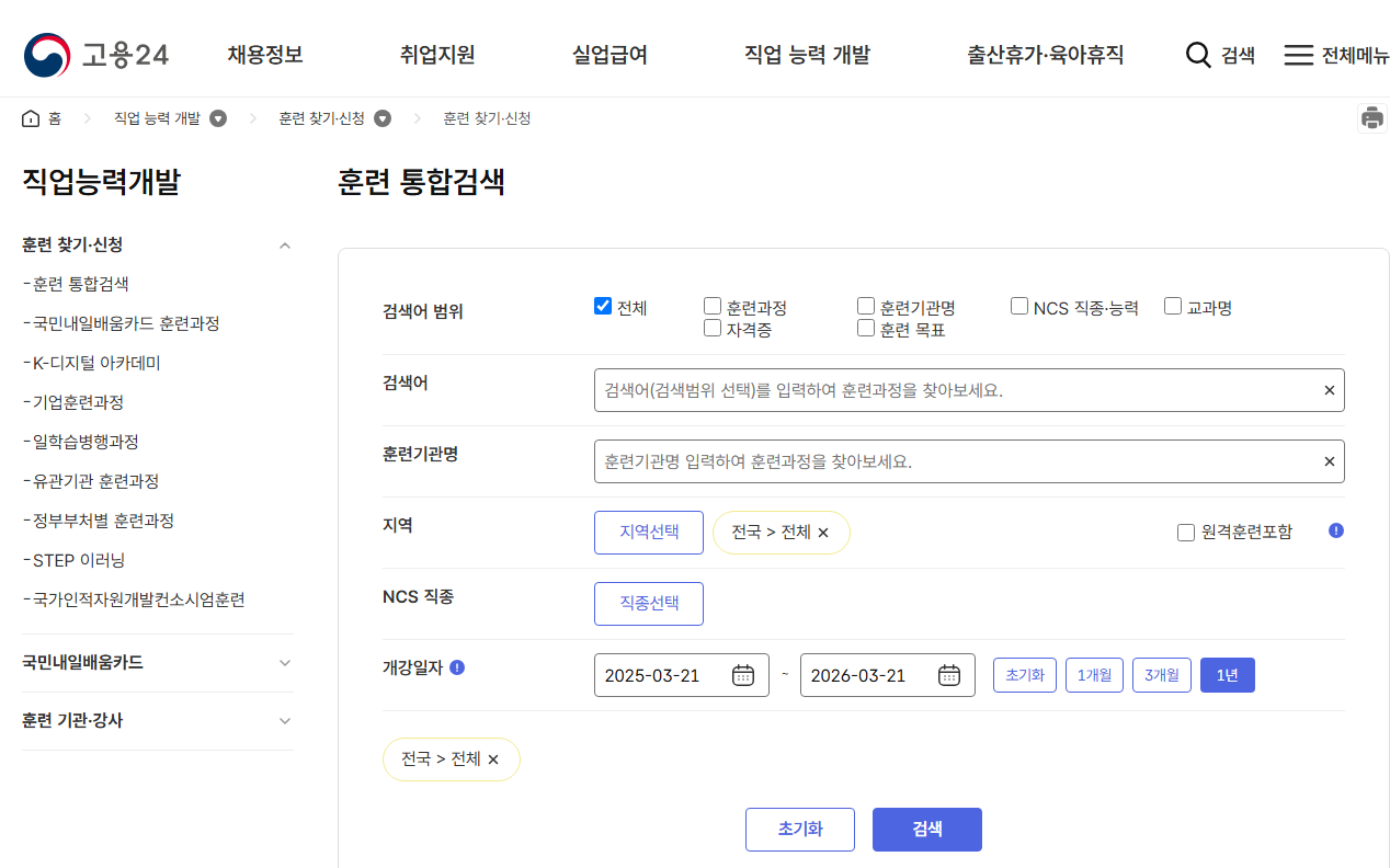 고용24에서 직업능력개발을 위한 훈련을 찾아 보면 여러과정이 있습니다.