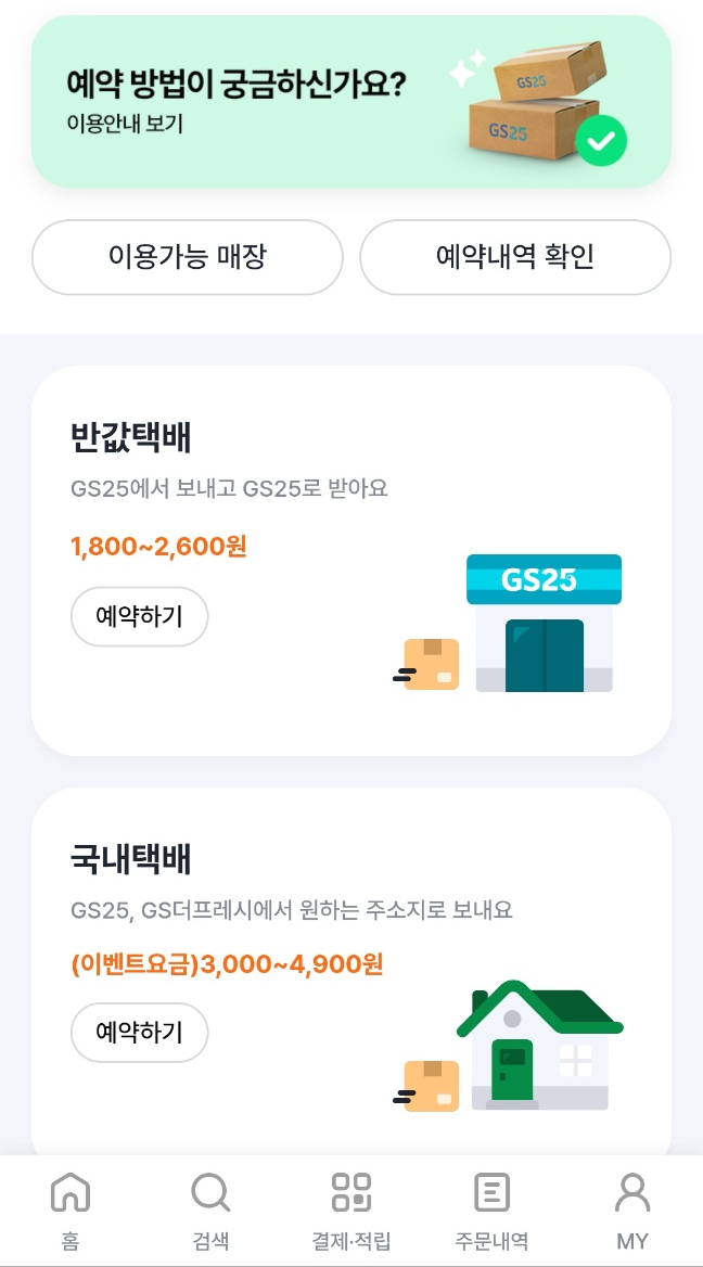 그런데 편의점 주인 아주머니께서 우리동네 GS앱에서 예약을 하면 많이 보내고 멀리 보내도 택배비가 얼마 이상 안나온다고 하시더군요. 그래서 이용해 봤습니다.