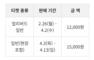 - 청소년: 현장 10,000원 (사전 예매 시 8,000원)