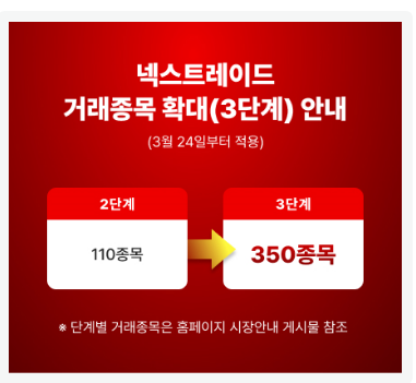 넥스트레이드는 처음에는 10개 종목으로 출발했지만, 3월 24일부터 350개 종목으로 그 범위를 크게 확대했으며, 3월 말까지 800개 종목으로 늘릴 계획입니다. 이 확대된 종목에는 코스피 200과 코스닥 150 지수의 구성 종목들이 포함됩니다.