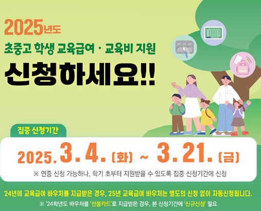 '24년에 교육급여 바우처를 지급받은 경우, '25년 교육급여 바우처는 별도의 신청 없이 자동신청됩니다.